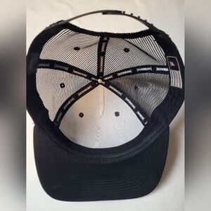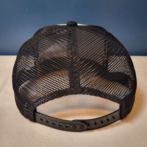 Stylish Hoonigan trucker hat in black and white. Features a mesh back for breathability. Pre-owned with gentle wear.