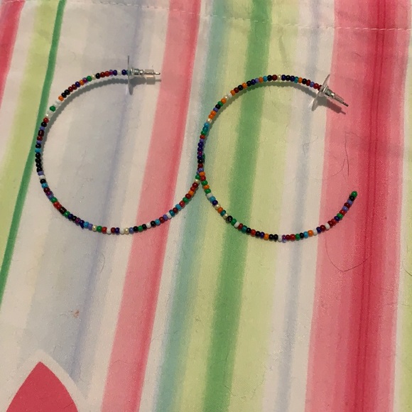 Bright, multicolored seed bead hoop earring. These go with everything! Never been worn.