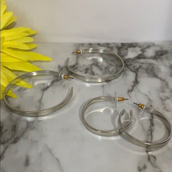 Silver hoop earring set with one pair at an approx 1.5in drop and the 2nd pair of earrings with an approx 2in drop!