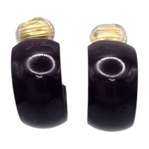 Hoop Earrings Clip On Retro Dark Purple Plumb Small Chunky Clip On Gold Tone