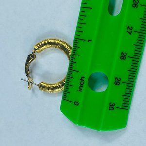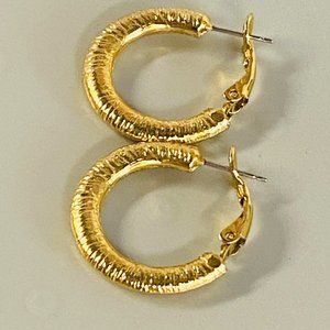 Hoop Earrings Gold Tone Round Womens Textured Omega Backs Shiny Fashion Style
