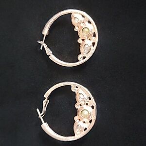 Hoop Earrings In Rose Gold Color With Large Crystals