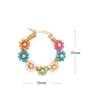 This attractive pair of hoop earrings will make your outfit stand out. Colorful flower design brings spring and summer romance to your look. High quality materials guarantee long lasting wear. Pair with a flowing Maxi and some gold sandals.