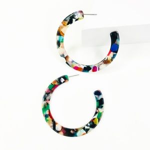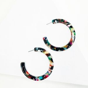Sleek and fun hoop earrings in trendy multicolor mix. An upgrade to the favorite hoop earring fashioned from multicolored acetate—a true statement to set off any look.
