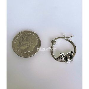 Embrace the adorable charm of these panda bear earrings, playfully and lazily perched on each earring hoop. The smaller size of these means ideal for every day wear.