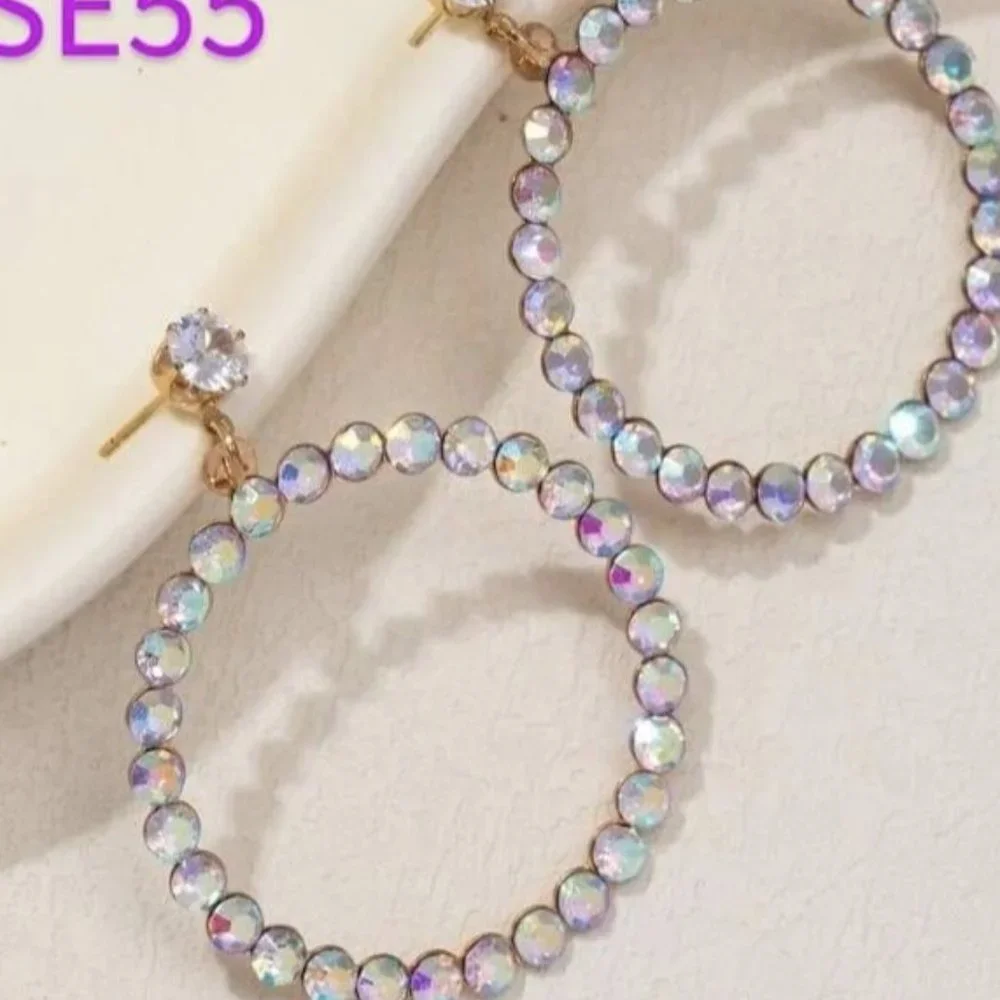 Beautiful rhinestones surround the hoop. These are post fittings. These earrings are brand new.