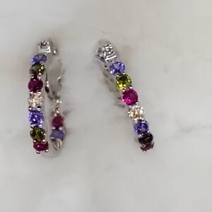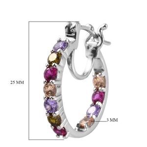 Simulated Multi Color Diamond Hoop Earrings in Platinum Bond Copper