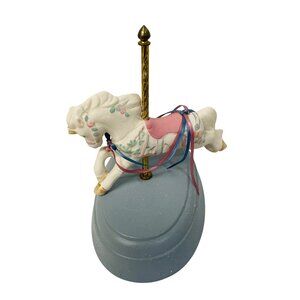 Hoopes Carousel Horse Figurine Hoopes With Floral Design & Blue Base Signed