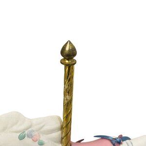 This carousel horse figurine is elegantly crafted by L. Hoopes. The piece features a charming floral design, a blue base, and a decorative pole, making it a sophisticated addition to home decor collections.