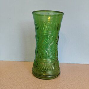 Hoosier Glass Emerald Green Swirl and Leaf Pattern Vase