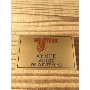 Hooters Girl Worn Gold Uniform Manager Name Tag “Aymee”