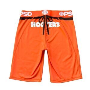 Hooters logo orange waitress uniform biker shorts. Fitted style. Stretch knit fabric. PSD signature brand wide elasticized waistband. Hooters logo on the front & back✨