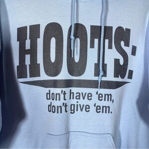 Hoots Unisex size Medium Blue graphic hoodie Hoots don't have 'em don't give 'em