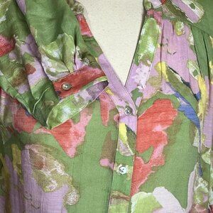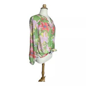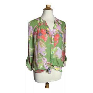 Hope And Harlow Top Blouse M Medium Floral Button Tie Roll Tab Sleeve