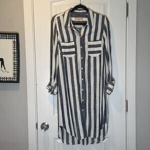 Hope & Harlow Button Up Stripped Long Sleeve Preppy Dress Size 10
