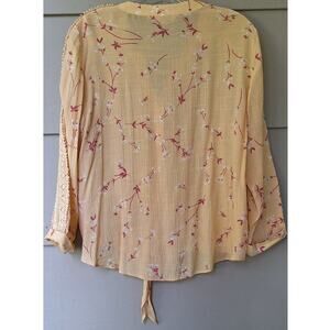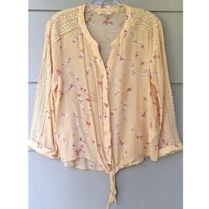 Hope & Harlow Tie Front Crochet details Blouse Top Yellow Floral Size M Cottage