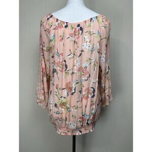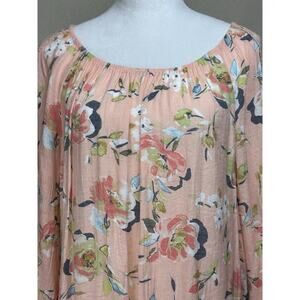 Hope & Harlow Women’s Size XL Peach Floral Top Gathered Neck Elastic Waist