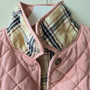 Hope & Henry girls pink quilted barn jacket with neutral plaid lining. Pink color is no longer sold in stores.