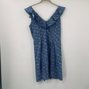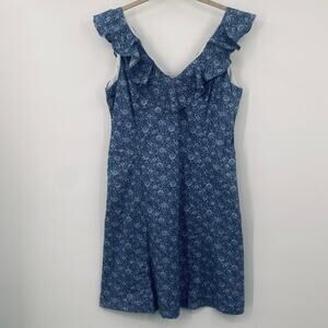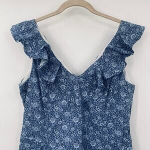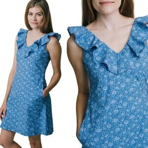 Hope & Henry Organic Cotton Dress Ruffled V Neck Floral Print Blue Womens 8
