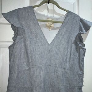 Hope & Henry linen blend midi dress Sz 14 inset waist flutter sleeves