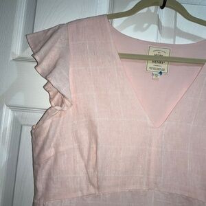 Hope & Henry linen blend midi dress Sz 14 inset waist flutter sleeves