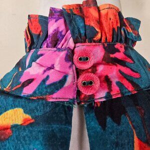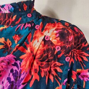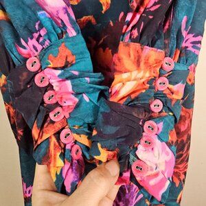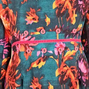 Hope & Ivy Green Floral Midi Dress 8 High Neck Vibrant Bloomcore Button Detail