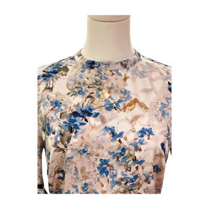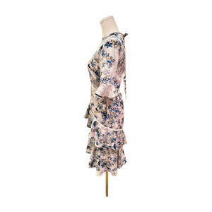 Hope & Ivy Cream Blue Floral Size 8 Open Back Tiered Ruffle 3/4 Sleeve Dress