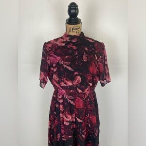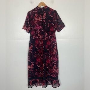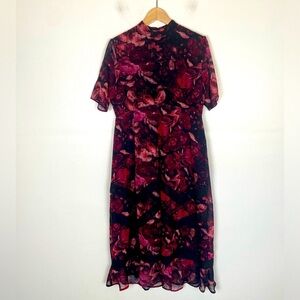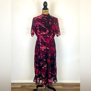 Hope & Ivy Maternity Floral Midi Dress Size 16 Chiffon Red & Black Mock Neck