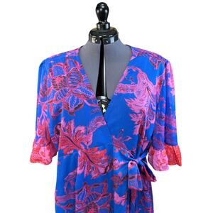 Hope & Ivy Maternity Floral Wrap Dress Size 16 Pregnancy Boho Blue & Pink