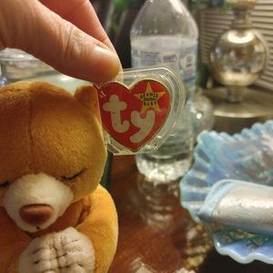 Hope Bear Beanie Baby-RARE, mint, new, one owner, been stored since I bought it in a plastic container. Birthdate on swing tag 1998, on tush tag 1999, holographic tush tag, no style # on inside of tush tag, handmade, 1st edition, punctuation and spelling errors in tush and swing tags. Tush tag TY INC is capitalized and has an extra space behind TY. 1965 (KR) Korean market. PE pellets, retired 12/23/99. Bar Code #04213. 7 inches tall. Plastic on swing tag.