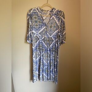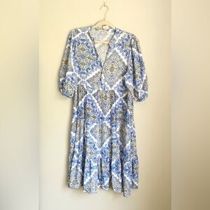 Hope Springs Printed Tiered Midi Dress in Blue and White Size Medium