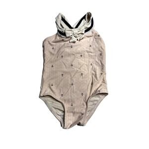 Hope and Henry Little Girls Swimsuit Sailor with Bow Pink Nautical 2t Anchors