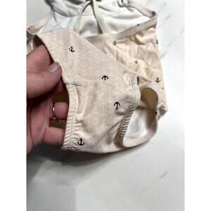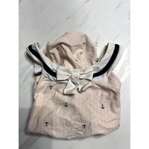 This swimsuit is so precious with the sailor look. There is some wear on the bottom. Included photo of it but still such a cute suit especially if still in swim diapers.