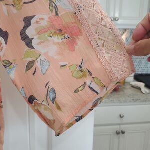 Hope and Harlow Womans Lace Trim Floral Blouse, Size Large, Perfect condition, Actual Measurements are