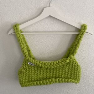 Handmade using soft wool, the Block Colossal Knit Bralette, Featuring the signature chunky knit stitch and a HOPE logo.