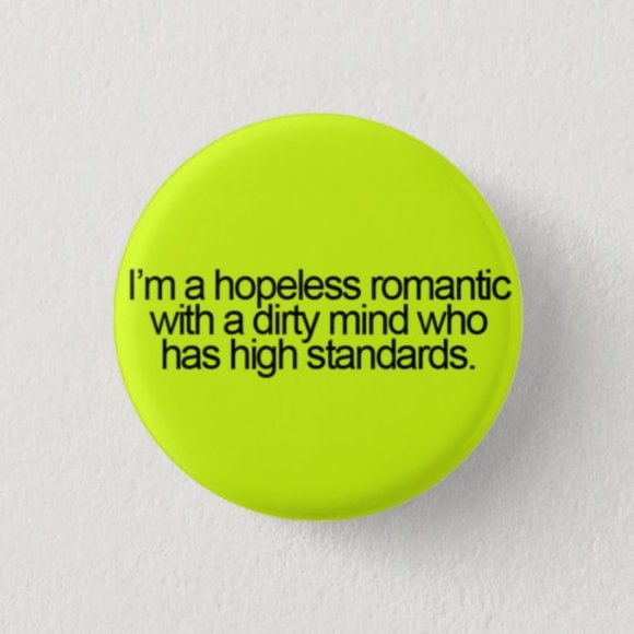 Hopeless Romantic Button 1 1/4 inch Covered with scratch and uv-resistant mylar