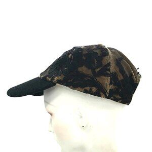 Hopeless Romantic Baseball Cap in Beige with Black Lace Overlay