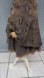 Dreamy and eclectic Hopeless Romantic layered midi skirt in earthy brown tones, blending boho, fairycore, and Y2K grunge vibes. Features a unique textured overlay with distressed-style patchwork, a crocheted underlayer, and a ruffled hem for that effortlessly artsy aesthetic. The attached fabric rosette detail adds a soft, romantic touch.