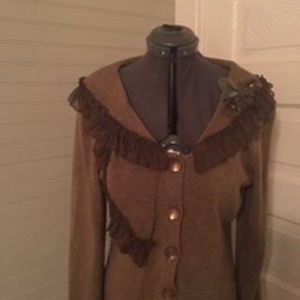 Hopeless Romantic Victorian-style cardigan purchased from Victorian Trading Co. Beautiful floral detail; jewel buttons; ruffle-trimmed; Size M;