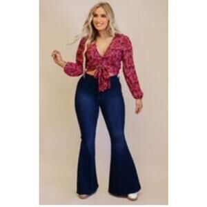 Hope's Boho Burgundy Floral Crop Tie Top Medium