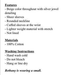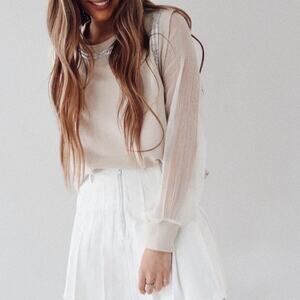 Beige sweatshirt like bodice with sheer long sleeves