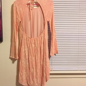 Pink and white flower design dress from Hope's boutique with tags. Long sleeve with an open back.