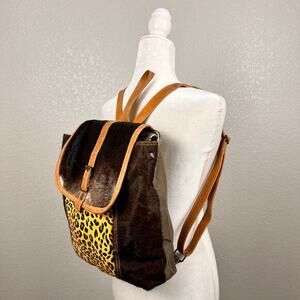 Hopofly Backpack Bag Genuine Calf Hair Leather Accents Leopard Print Bohochic