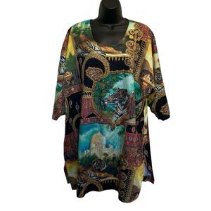 Horacio Collection Tiger Elephant Taj Mahal Print Tunic Top Mini Dress One Size