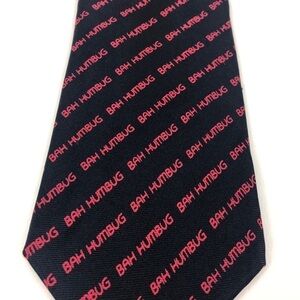 Horchow Collection Men's Tie, Graphic 'Bah Humbug' Black & Red. All Silk