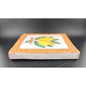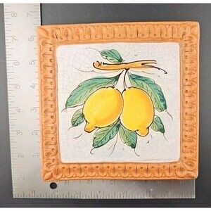 Horchow Italian Glazed Terracotta 6.5" Lemon Fruits Wall Art Tiles Italy