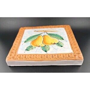 Horchow Italian Glazed Terracotta 6.5" Pear Fruits Wall Art Tiles Italy - 2 lbs