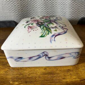 Playing cards are original to the porcelain box with one deck being sealed and unopened. This piece is like new other than one deck being opened and even it is in good shape!
