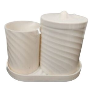 Enhance your bathroom decor with this elegant 3 piece accessory set. Perfect for adding a touch of style and organization.