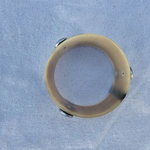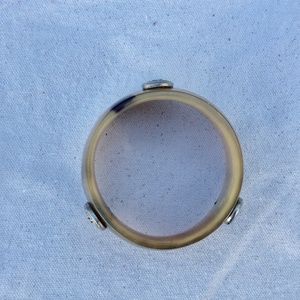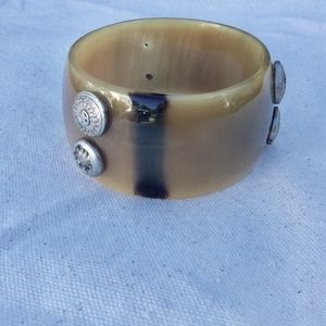 Unusual Natural horn cuff studded with 6 satin rhodium textured studs.